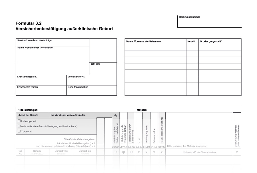 Versichertenbestätigung außerklinische Geburt