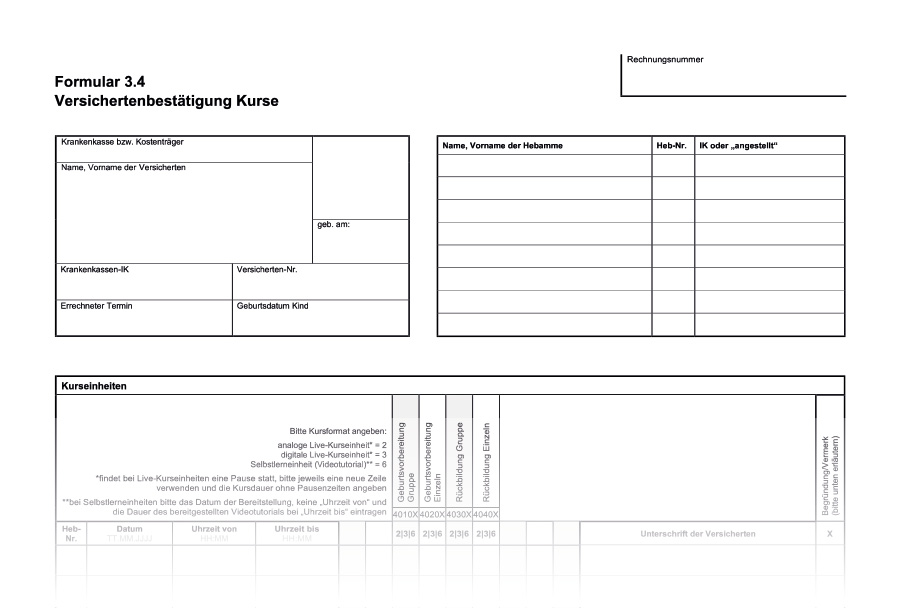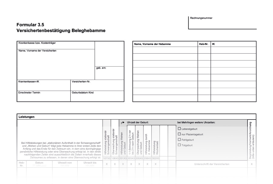 Versichertenbestätigung Beleghebamme